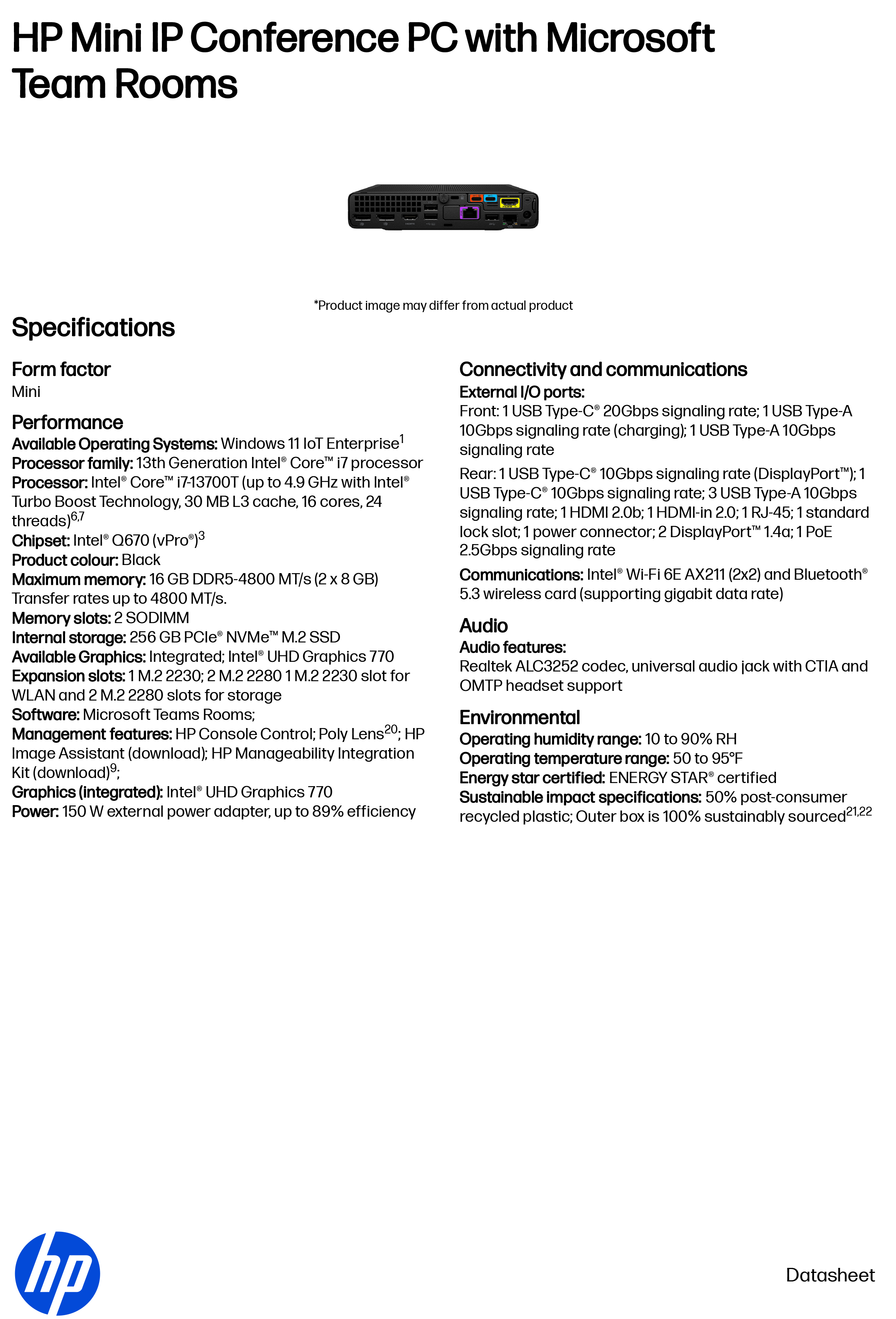 HP Mini IP Conference PC with Microsoft Team Rooms